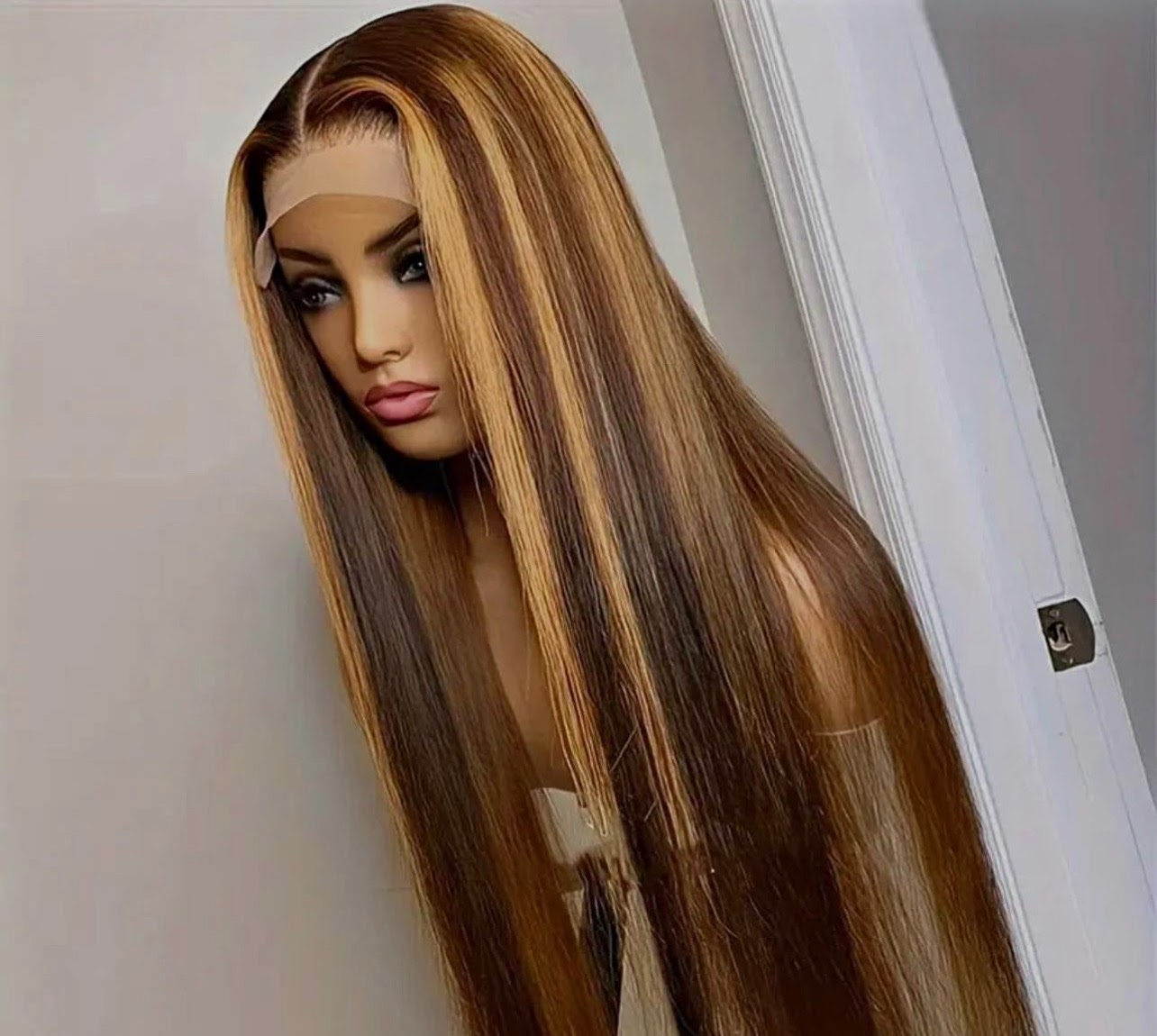 Highlight Ombre Straight Lace Front Wigs Human Blend Hair 13*4 HD